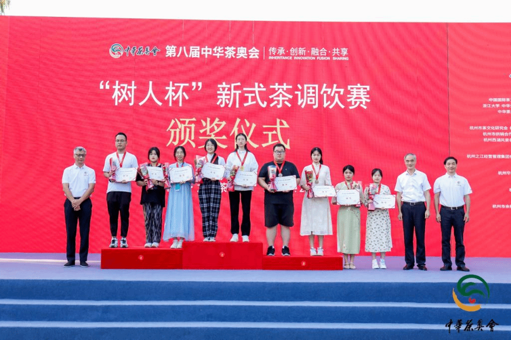 9月25日,第八届中华茶奥会决赛在杭州龙坞茶镇如火如荼地展开,来自全国各地的行业企业等专业选手云集。经过激烈的角逐,beat365官网大学生艺术团调饮队涤烦子•新茶饮工作室陈倩、敖鑫慧同学创作的“只此青霞”调饮茶作品成功斩获调饮赛产品组银奖,刘星雨、胡莹莹同学创作的“落日与鲸”获优胜奖。