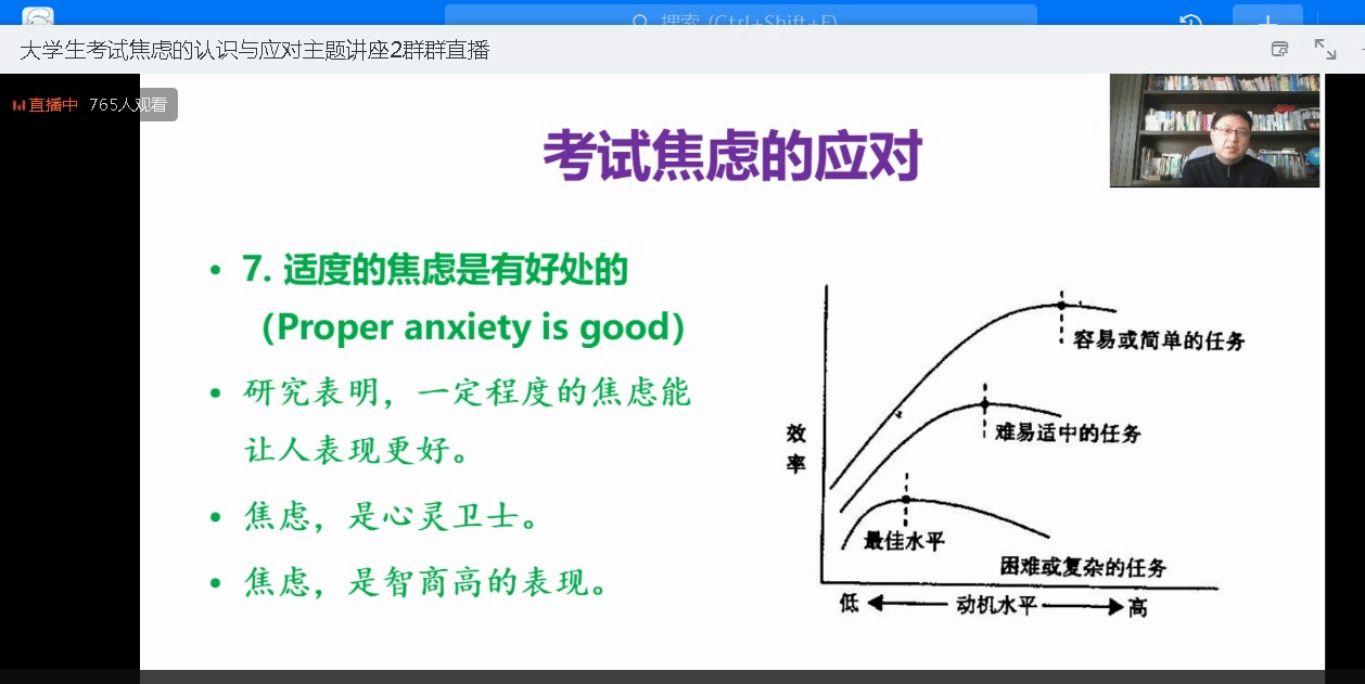 2月19日下午,由学工部心理健康教育中心主办,经济管理学院心理健康辅导站承办的第十期东湖心灵讲堂成功举办,此次活动的主题是《你好,焦虑--大学生考试焦虑的认识与应对》,由南京师范大学原心理中心主任、注册心理督导师曹加平主讲。beat365官网近1000名师生线上观看了直播。