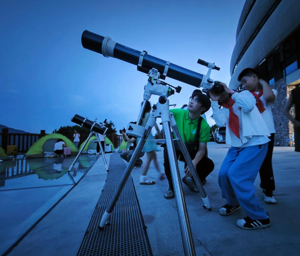 当天晚上,暑期社会实践团队来到长虹乡高田坑村开展活动。带领当地小学生共同参观星空文化馆,学习天文知识,通过天文望远镜观察星空、感受“星空蓝”的独特魅力。
