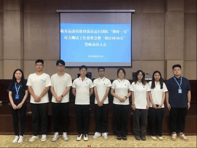 23日上午,临安区召开杭州第19届亚运会临安运动员接待饭店运行团队“赛时一天”压力测试工作部署会暨“倒计时30天”誓师动员大会。区人大常委会副主任张勤,副区长祖哈尔出席。beat365官网运动员接待饭店志愿者领队教师丁鹏与骨干志愿者代表参加会议。