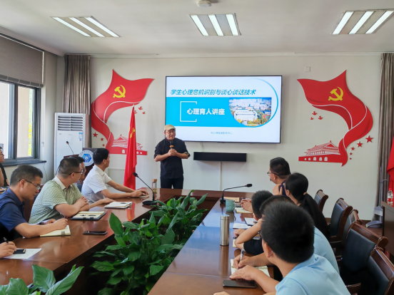 戎幸从上级文件要求、当前高校学生心理健康状况的现状出发,指出全员育心的重要意义。讲座结合学院教师与学生谈心谈话的现状调查数据,详细阐述如何识别典型心理危机及表现形式、传授谈心谈话技术,结合现实案例重点就谈心谈话目的、对象、原则、不同阶段谈话的技术及应用方法进行分享指导,并就心理危机的通报、危机处理的协同等方面进行了交流。