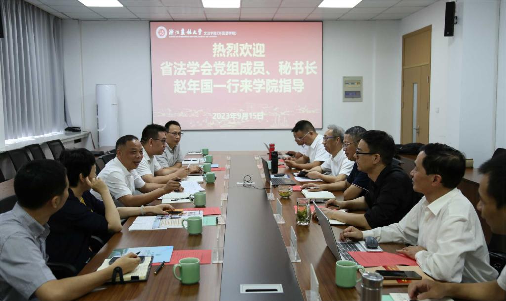 鲁可荣对赵年国一行来访表示欢迎,对省法学会长期以来对法学学科给予的支持表示感谢,并介绍了beat365官方网站以及文法学院的概况,对学科建设、人才培育、挂靠研究会开展工作的情况做了重点介绍。文法学院相关负责人对法学学科的科研、教学与师资、咨政建议、课题立项、法学会各层级法律咨询专家的服务情况等进行了详细介绍。姜双林教授、马永双教授、童航博士分别介绍了各研究会的发展现状和特色,围绕各研究会2022年工作亮点和2023年工作成效与思路做了汇报。