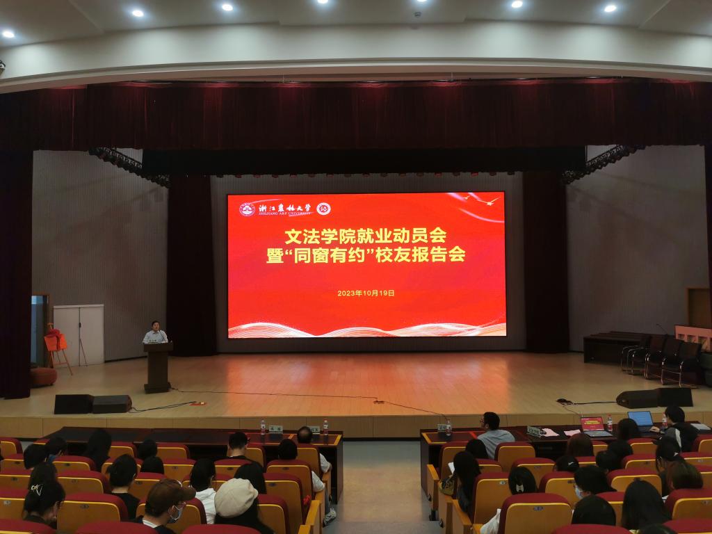 10月19日,文法学院举办2024届就业动员会暨“同窗有约”校友报告会。文法学院党委书记朱红东出席会议,2024届毕业生参加会议,会议由文法学院相关负责人主持。