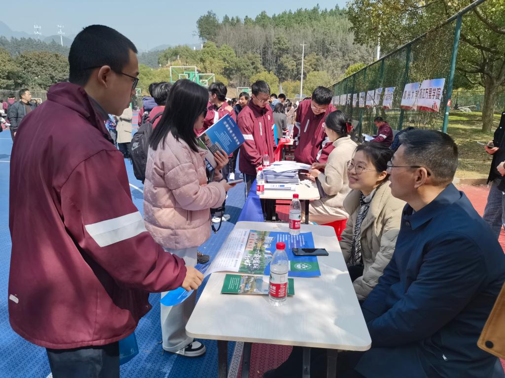 3月10日,食健学院党委书记汪和生一行5人赴杭州地区参加由浙江教育报刊总社主办的建德严州中学场2024年“三位一体”招生现场咨询会。咨询会现场人头攒动,老师们向到场考生及家长认真介绍了学校发展概况、办学条件、专业特色、招生计划与往年录取分数等情况,并就考生及家长提出的 “三位一体”报考门槛、相关流程、报名材料等相关问题给予细致有效的解答。此次招生现场发放招生宣传材料300余份,进一步加深了学院与杭州地区中学院校的联系与交流。
