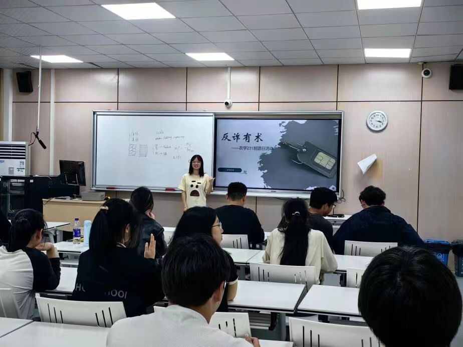 农学212班、农学231班等团支部组织开展以“反诈骗”为题的主题班会,围绕诈骗的常见形式、防范措施、网络安全与个人信息保护等方面,结合身边的案例,讲好反诈第一课。农学232班、农学研231班等团支部组织开展反诈知识竞赛、反诈小游戏等活动,同学们在娱乐的同时详细了解了网络诈骗的常见类型、识别方法以及应对措施。植物保护232班等团支部组织同学演绎反诈小品和情景剧,拍摄反诈宣传视频,从身边出发,强调了反诈防骗的重要性。植物保护231班、智慧农业231班团支部在班级内成立反诈宣讲团,通过宣讲,传播正确的防骗观念,引导身边同学提高防骗意识,谨防上当受骗。