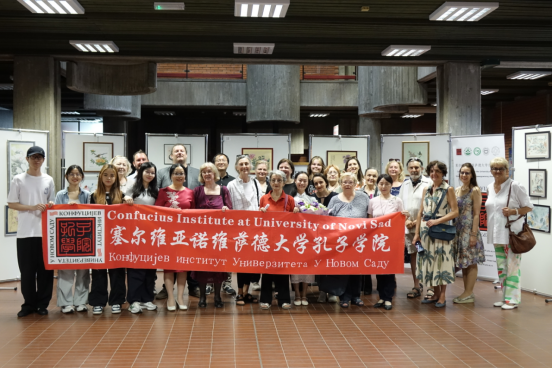 当地时间6月25日,以“百花齐放春满园”为主题的中国书画展在诺维萨德大学孔子学院开幕。
