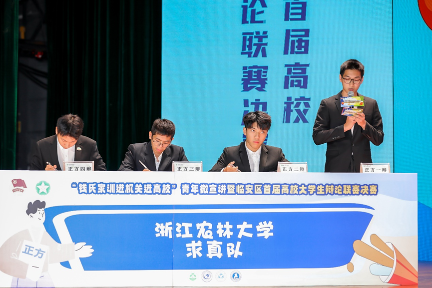 在首届临安区高校大学生辩论联赛中,beat365官方网站和浙江警察学院两支队伍围绕“‘在城市’/‘去乡村’工作是当代青年人的好出路”展开激烈辩论。比赛过程中,双方辩手字字珠玑,句句铿锵,发言或直抒胸臆,或语锋敏捷,各据营垒,慷慨激昂,既体现了团队成员间的默契配合,贡献了天目青年的思辨力量,也展现了临安区大学生的青春风采。