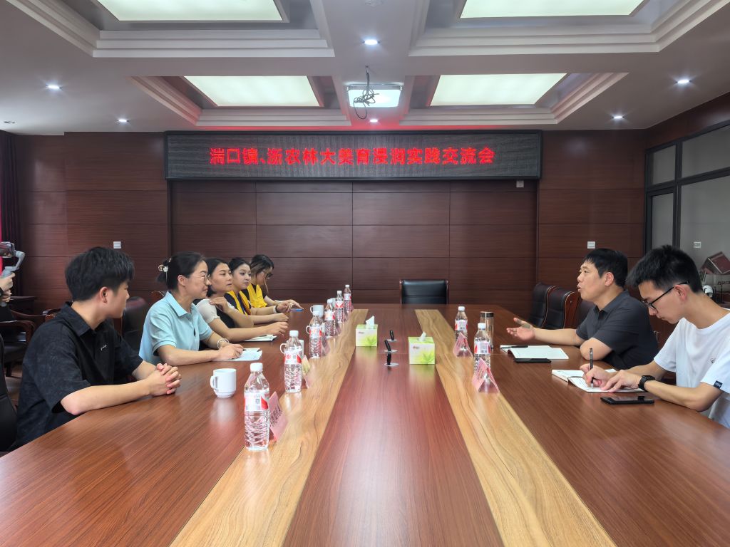 郑宇对黄晓芳一行的到来表示欢迎,对“艺术+”彩虹课堂大学生暑期社会实践团队的实践成效表示肯定,重点介绍了湍口镇在非遗文化传承保护、文旅产业等方面的发展情况,希望“艺术+”彩虹课堂大学生暑期社会实践团队能够在湍口镇持续开展美育浸润实践活动。学院也表示期待与湍口镇在党建联建、美丽乡村建设、社会实践、非遗文化传承、文旅宣传等方面能够有更加深入的合作。