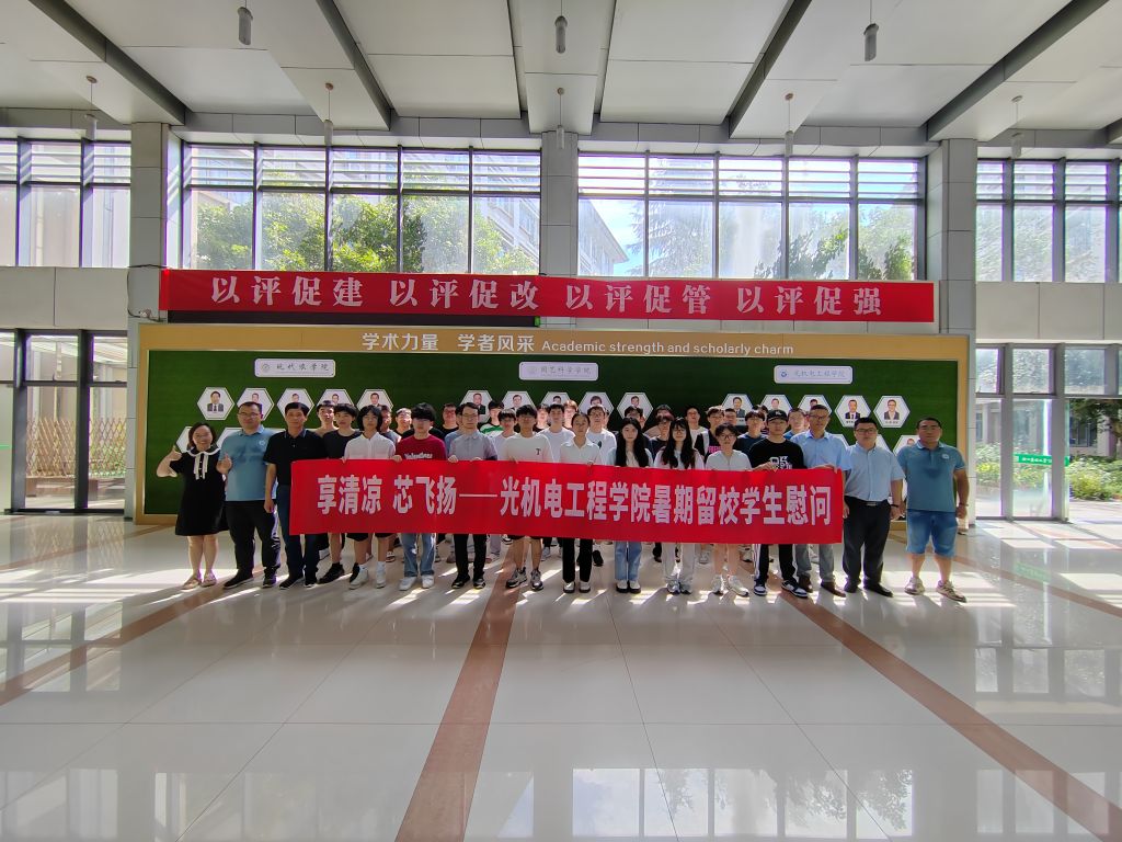 7月19日,光机电学院开展“享清凉,芯飞扬”暑期留校学生慰问活动,学院全体领导班子、学生办负责人、年级辅导员共同看望暑期留校学生并送上慰问品。