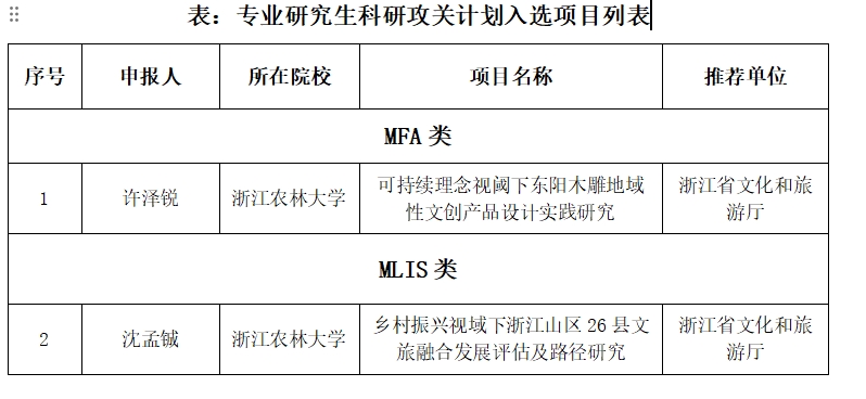 近日,文化和旅游部办公厅发布《关于公布2024年全国文化艺术职业教育和旅游职业教育提质培优行动计划支持名单的通知》通知,经个人申报、浙江省文化和旅游厅推荐、文化和旅游部科技教育司组织评审,beat365官网2项专业研究生科研攻关计划入选全国文化艺术职业教育和旅游职业教育提质培优行动计划,这是beat365官网首次入选该计划,入选数量位居全国第二。
