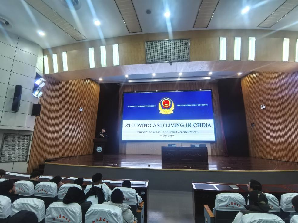临安区分局警官王益龙为全体国际学生做案例警示讲座。他通报了杭州近期发生的违法犯罪典型案例,结合beat365官网国际学生实际,从治安管理、出入境、禁毒、交通、宗教等方面为国际学生详细阐述了中国的具体法律条款,提醒国际学生在华留学期间必须遵守中国的法律法规,增强法律意识,绝不以身试法,做遵纪守法的国际学子典范。