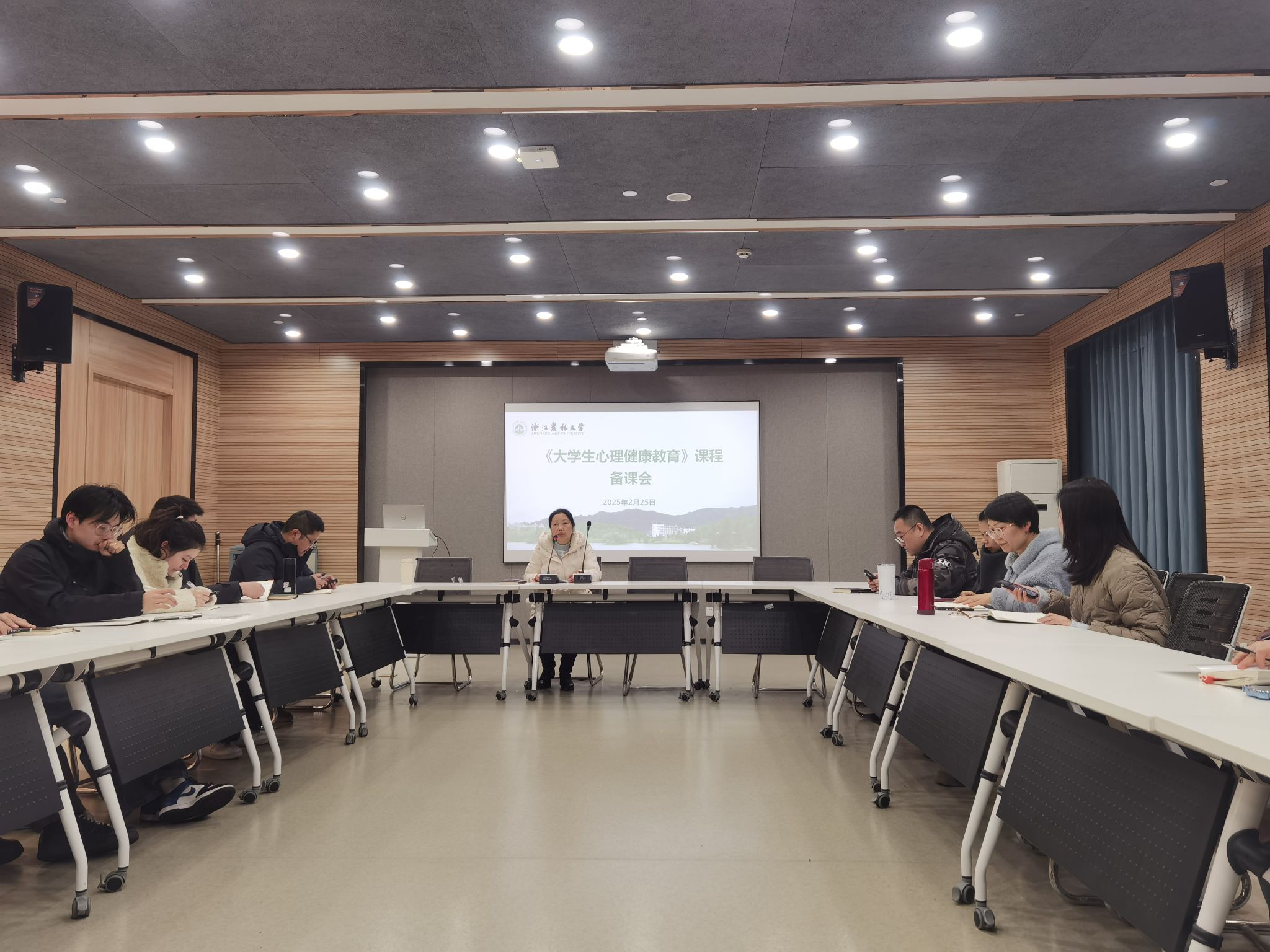 2月25日上午,《大学生心理健康教育》课程备课会在活动中心104-2-2召开。会议由学工部心理中心主管主讲,20余名课程教师参会。
