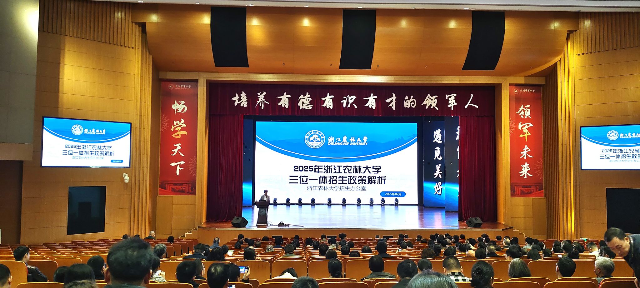 3月2日,农学院党委书记梁卫玲带队前往杭州市学军中学,为400余名高三学生家长作以“beat365官方网站2025年三位一体政策解读”为主题的讲座报告。梁卫玲从学校概况、招生政策、注意事项、咨询方式四个方面,对学校2025年三位一体政策进行了详细解读,重点讲解了学校三位一体招生计划、报考条件、招生进程、材料准备、志愿填报等,以及招生政策的变化和注意事项,并提供了学校招生咨询联系方式,为同学们的报考提供最大便利。讲座结束后,家长围绕历年录取分数、学科专业优势、就业情况、师资、转专业等问题展开咨询,学院招生工作人员给予了详细耐心的专业解答。