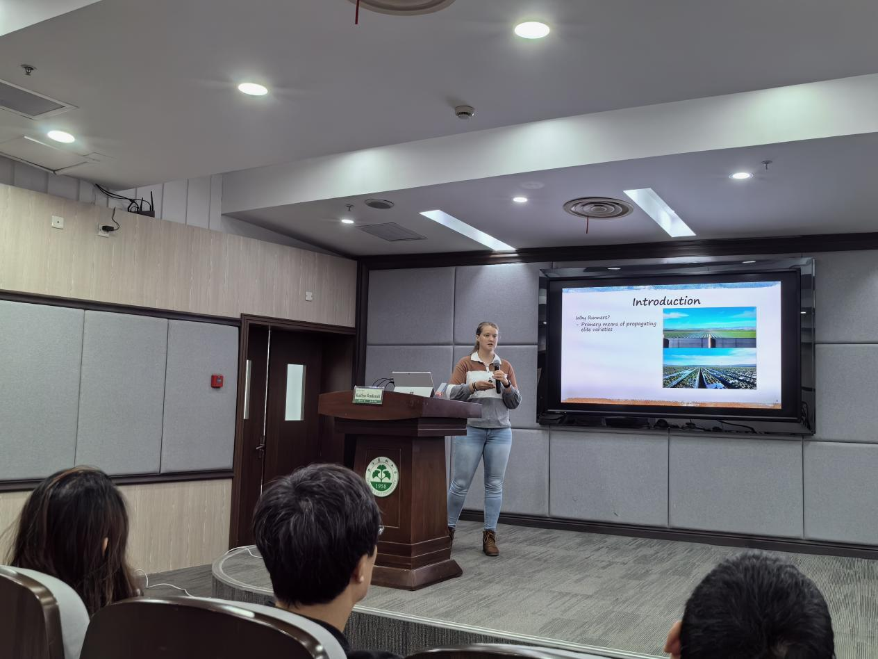 Mark Porter博士以“Gene Discovery and Genomic Prediction for improved Strawberry Flavor”为题,介绍了在草莓风味研究上的进展;Kaitlyn Vandracek博士以“Identifying the Genetic Mechanisms for Manipulation of Strawberry (Fragaria ×ananassa) Runner Production”为题,介绍了草莓匍匐茎产生的机制研究;沈锴博士以“A Comparative Study of Precision 3D Reconstruction of Strawberry Plants for Non-Destructive Biomass Prediction”为题,介绍了通过3D影像精确测定草莓生物量的方法。