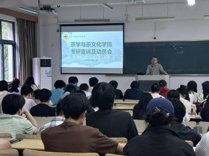 6月11日,茶学院于教4-305举行2026届本科毕业生考研宣讲及动员会。学院相关负责人,年级辅导员以及2026届全体学生参加会议。