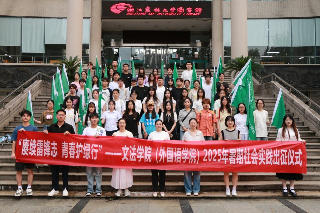 6月25日,文法学院在衣锦校区教学主楼116举行“赓续雷锋志 青春护绿行”2025年暑期社会实践出征仪式。文法学院相关负责人,29支实践团队的学生代表、学院团学成员参加本次活动。