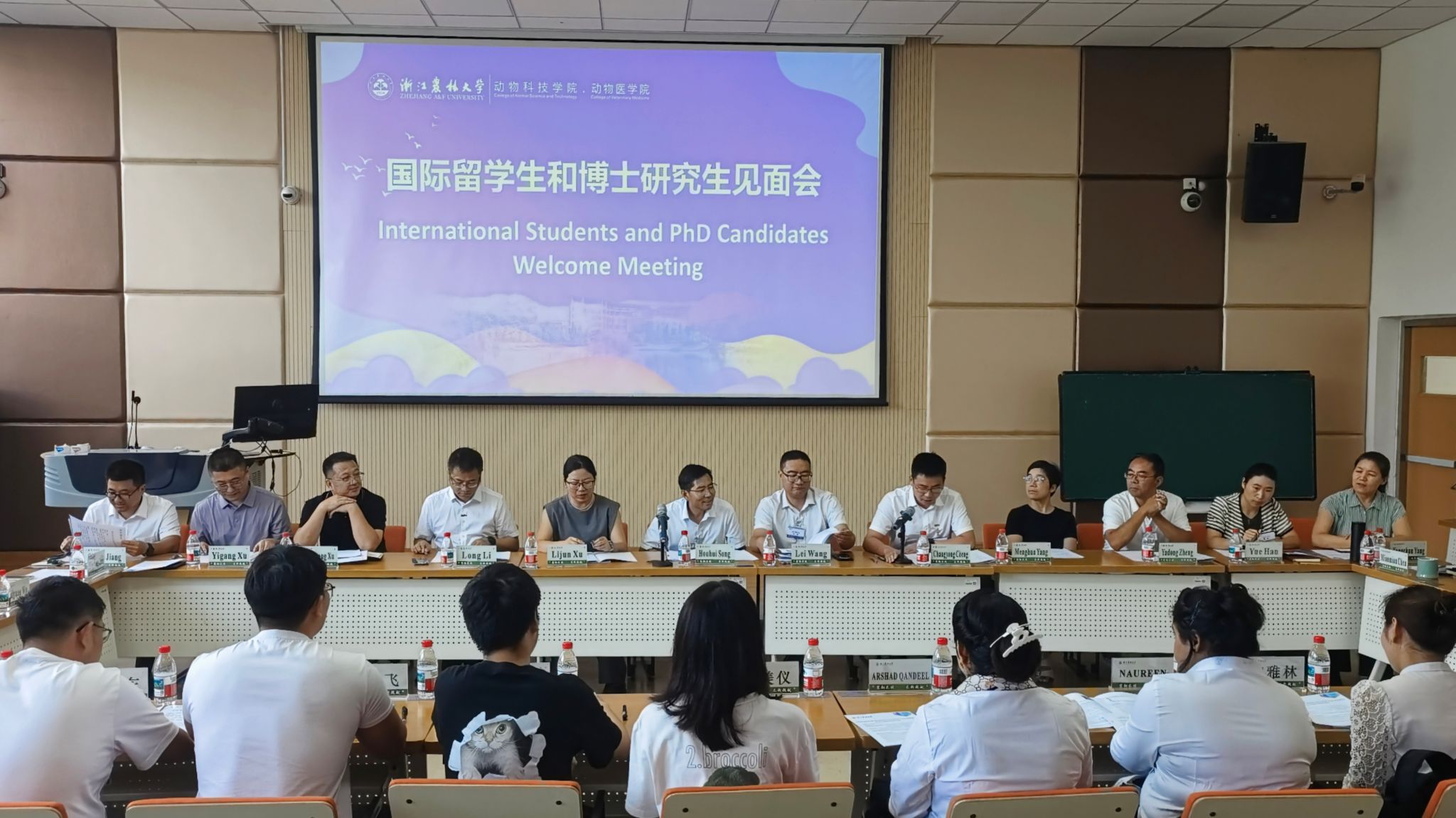 9月14日,动科动医学院在学2-201厚生堂举办2025级留学生、博士生与导师见面会。校党委委员、动科动医学院院长宋厚辉,国际处处长王磊、国教学院相关负责人,兽医学科和学位点建设负责人,留学生、博士生导师,任课教师代表,以及2025级留学生、博士生共同参加。