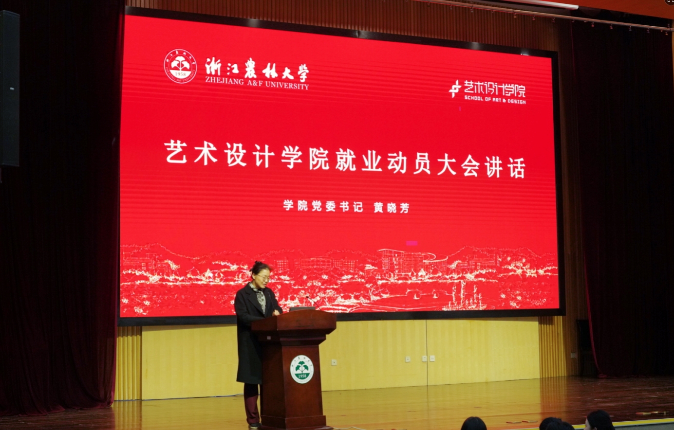12月18日晚,艺术学院于东湖校区图书馆第一报告厅举办2023级就业动员大会暨就业指导讲座。学院党委书记黄晓芳出席大会并作动员讲话,学院全体辅导员及2027届全体毕业生参加活动。
