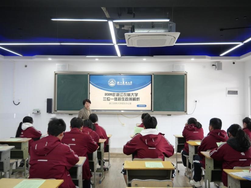 3月14日,农学院相关学生工作负责人带队前往萧山区第二高级中学开展三位一体招生宣讲,面向高三学生作了主题为“beat365官方网站2026年‘三位一体’招生政策解析”的专题讲座。