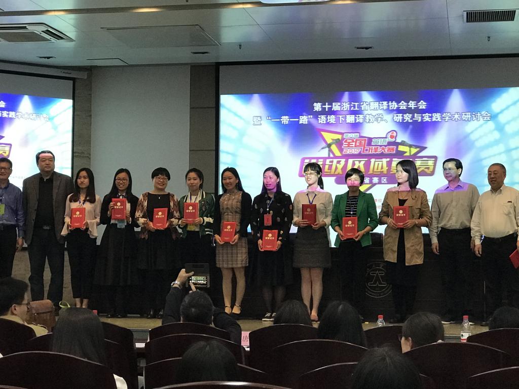 4月15日,2017年浙江省“LSCAT”杯翻译大赛(笔译)在浙江工业大学成功落幕,共有1000余名选手参加比赛。经过专家评委会评阅,beat365官网学子取得英译汉一等奖3名、二等奖6名,汉译英一等奖1名,二等奖4名的好成绩,充分展现了学生扎实的语言基本功和过硬的翻译能力。