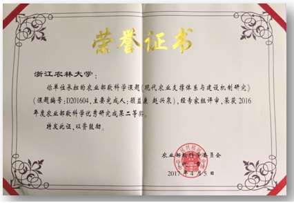 近日,农业部软科学委员会通报了2016年度优秀成果评选结果。由中国农民发展研究中心主任顾益康、常务副主任赵兴泉共同主持完成的“现代农业支撑体系与建设机制研究”成果喜获二等奖。