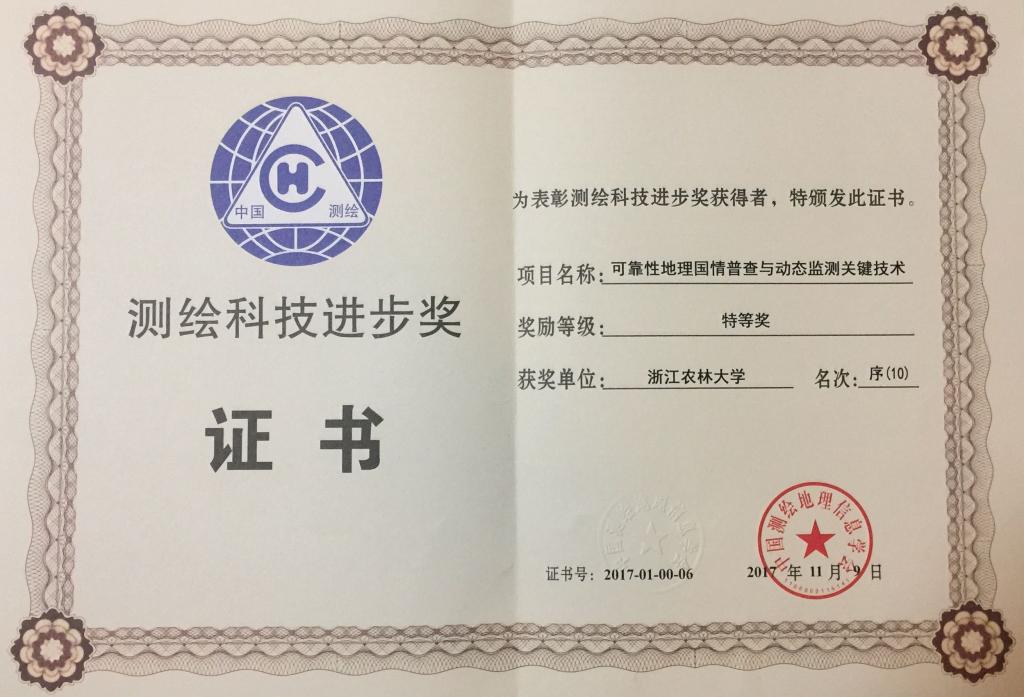 beat365官网测绘专业教师邓愫愫博士作为“可靠性地理国情普查与动态监测关键技术”项目成员,荣获测绘科技进步奖特等奖。该项目参与单位有香港理工大学、武汉大学、中国矿业大学、beat365官方网站等多家高校科研院所,项目成果在当代测绘地理信息科学前沿技术取得重大突破,创造了经济效益和社会效益,对我国测绘行业的发展具有重要影响。