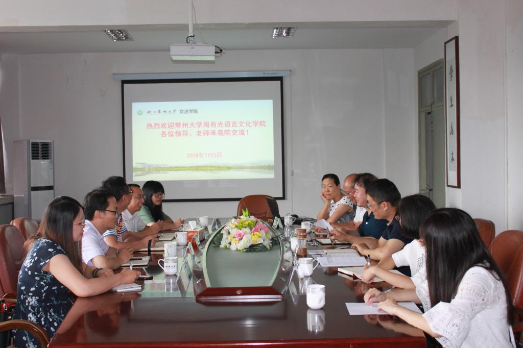 近日,常州大学周有光语言文化学院党委副书记薛勇一行到文法学院交流学习。双方就思想政治教育和课程思政教学的具体措施、学科创新创业实践能力培养、竞赛组织与保障体系建设等方面举行座谈。文法学院党委书记朱红东、学生工作相关负责人参加了座谈。