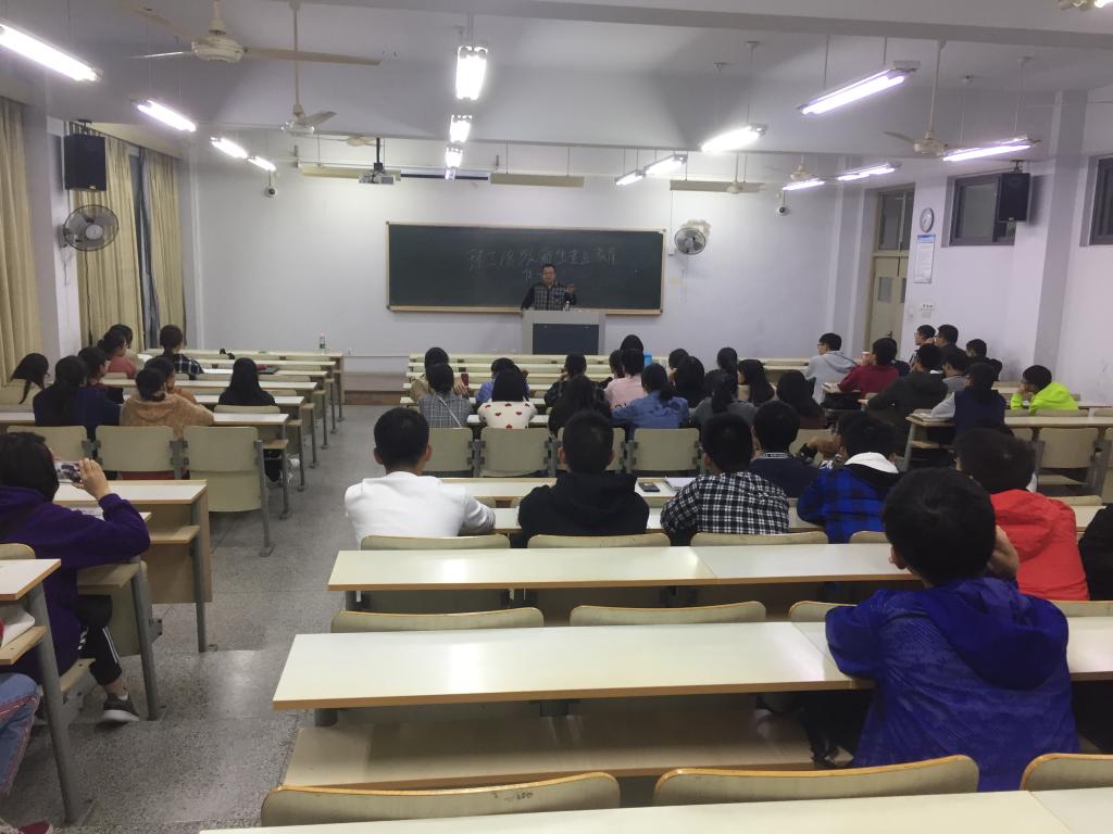 晚上,潘响亮教授又作为特邀嘉宾参加了环境工程专业2018级本科生的新生入学专业教育活动。他结合自身成长经历以及在环境污染治理研究方面的科研探索,用风趣幽默的语言向同学们介绍了环境工程专业的学科定位、优势和未来发展前景,并提出希望同学们要尽早设立大学四年的目标,尽快进入老师的实验室参加科研实践活动,更好的将书本知识运用到实际环境治理中。活动中,潘教授与同学们进行了热烈地交流互动,解答了同学们在专业学习、未来就业、考研等方面的疑惑。此次面向新生的专业教育不仅拓展了同学们的专业知识,也极大地调动了同学们的学习热情,更加坚定了他们在这一专业学习的信心。