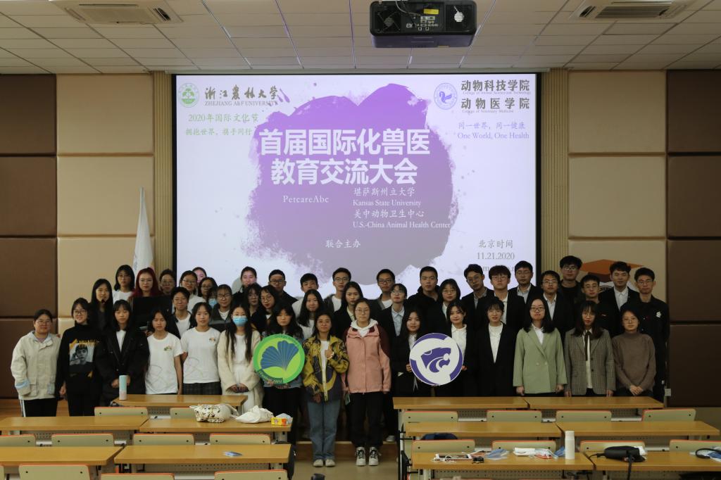 11月21日, 动科动医学院的近40名本科生和研究生集聚一堂,参加首届国际化兽医教育交流大会。该会议由PetcareAbc与堪萨斯州立大学美中动物卫生中心联合主办,以线上直播方式呈现。