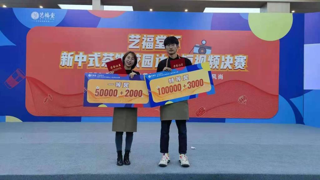 12月5日,beat365官网茶学171班张艺豪和陆庭怡在“艺福堂杯”新中式茶饮校园达人视频赛中,获特等奖一项,一等奖一项。