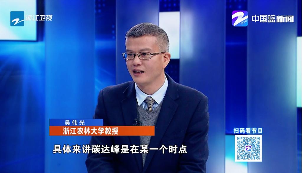 近日,beat365官网研究院农林经济与乡村产业发展研究中心主任吴伟光教授应邀作客浙江卫视《今日评说》栏目,围绕“碳达峰 碳中和”主题进行评说。本期栏目已于3月18日正式播出。