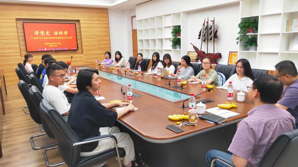 6月6日,数学与计算机科学学院科研育人名师工作室举办学生科研创新党史日主题活动,学院党委书记冯金明出席活动并做指导讲话,工作室负责人、全体成员参加了活动。