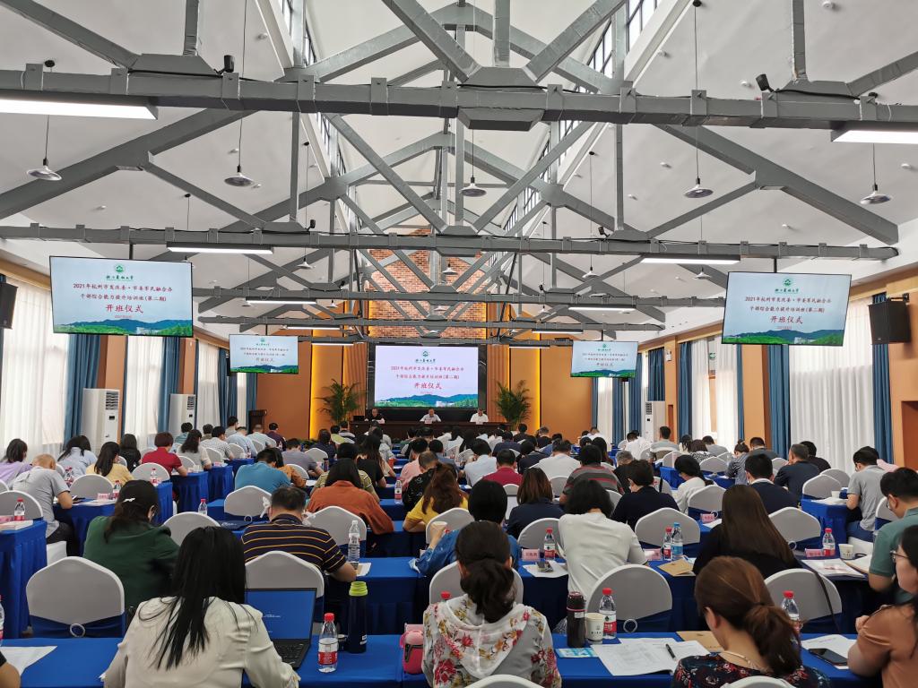 6月21日,2021年杭州市发改委·市委军民融合干部综合能力提升培训班(第二期)在衣锦校区开班。继续教育学院院长哀建国、杭州市发改委副书记朱师钧出席开班式。继续教育学院相关负责人主持开班式。