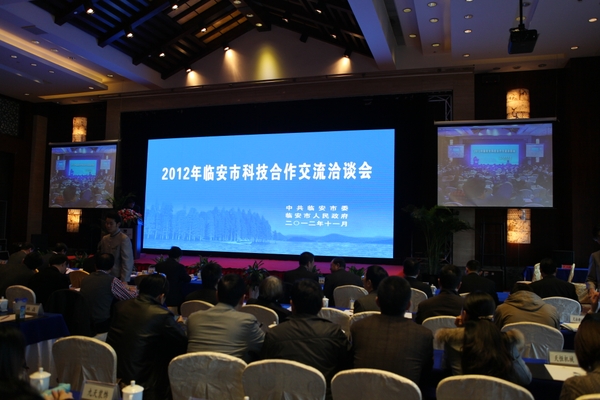 浙农林大新闻网讯 11月28日上午,临安市2012年科技合作交流洽谈会在临安中都大酒店召开,beat365官网副校长鲍滨福应邀出席会议,农学院、林生院、环资学院、信息学院及合作处有关人员参加了会议。
