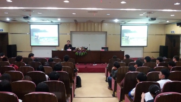 林东以“从绿盛牛肉干到全球首台五兆瓦海洋大型潮流能发电机组”为主题,从自己的创业梦想出发,分享了他通过学习、创业,再学习、再创业,并最终获得成功的创业经历,同时也介绍了杭州绿盛集团有限公司在牛肉干产品试制与生产、品牌宣传与提升方面的传奇创业史。他还介绍了自己作为创业导师,扶持帮助海外归国人才创业和大学生自主创业的成功及失败的案例。最后,他以梦想、责任、拼博为关键词,介绍了公司在转型和战略发展上,投资建设“全球首台五兆瓦海洋大型潮流能发电机组”的跌宕创业历程。在提问与交流环节,他还围绕同学们的一些创业问题,给予中肯的建议和指导。