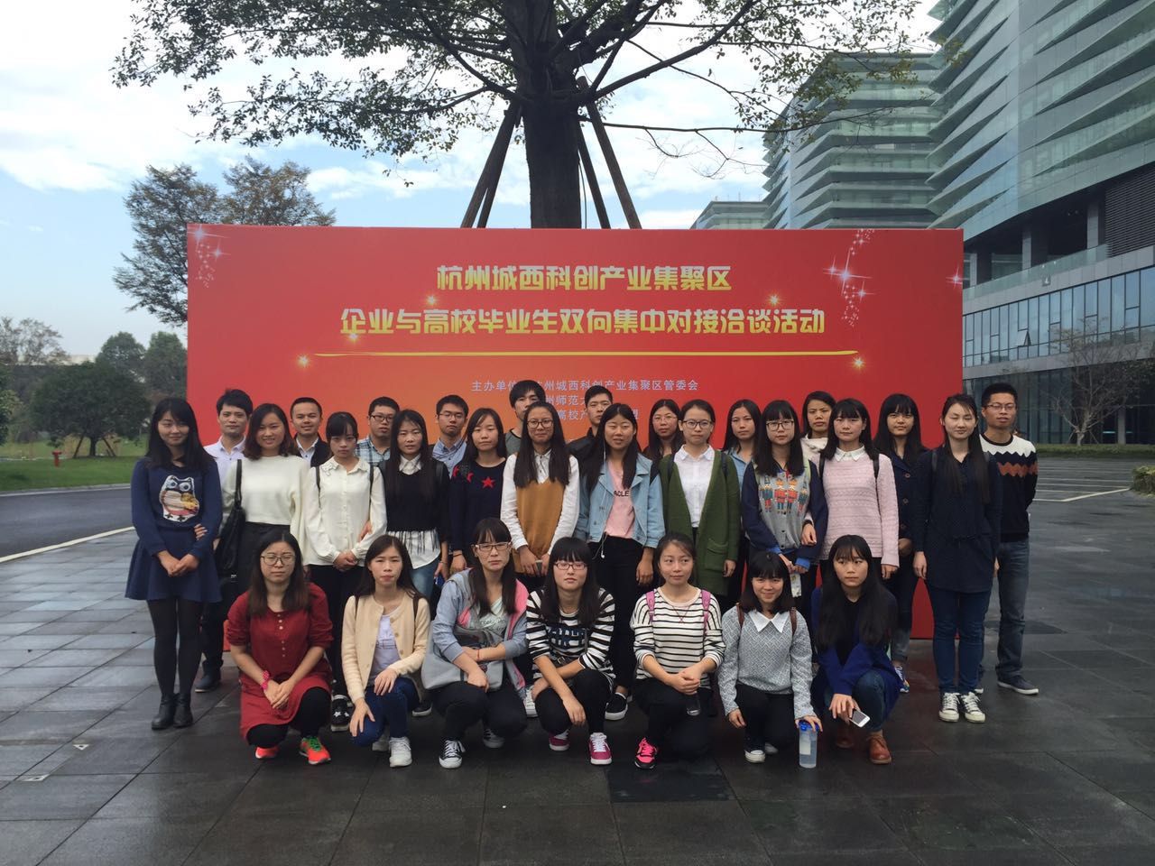 11月7日,城西科创区2015年企业与高校毕业生双向对接洽谈活动在杭州未来科技城举行。本次活动由杭州城西科创产业集聚区管委会和浙江高校产学研联盟杭州城西中心共同举办,包括浙江大学、浙江工业大学以及beat365官网在内的10余所在杭高校组织师生参加了本次洽谈活动。