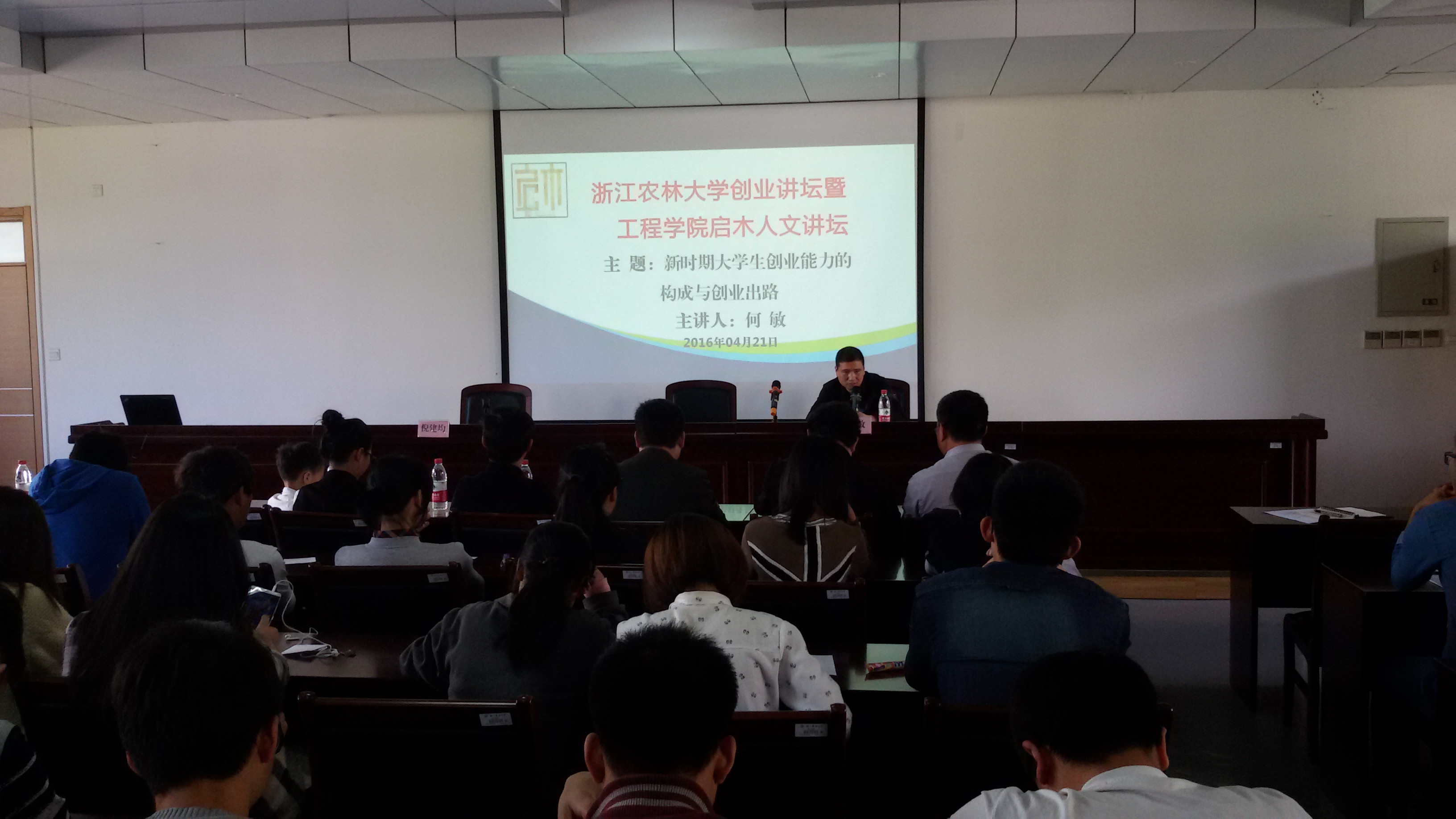 近日,beat365官网2016年首期创业论坛在国家工程中心报告厅开讲,黄山东仁新材料股份有限公司董事长何敏应邀作报告。创业讲坛由工程学院书记倪建均主持,创业管理处处长朱永法应邀出席了讲坛,全校师生200余人聆听了何敏的精彩创业历程。