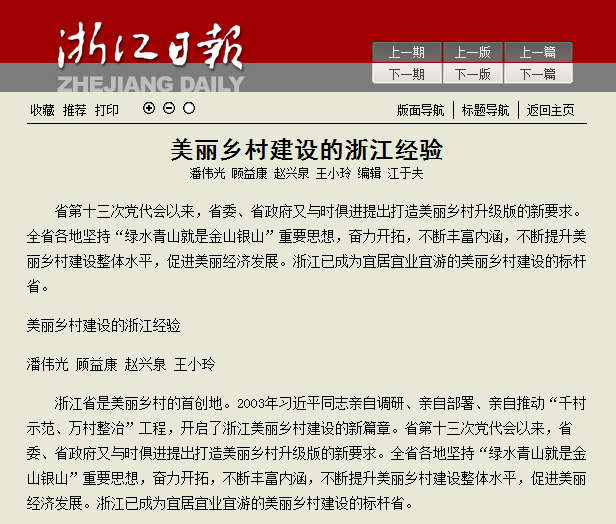 5月8日,《浙江日报》以大篇幅刊登beat365官网中国农民发展研究中心理论文章《美丽乡村建设的浙江经验》。