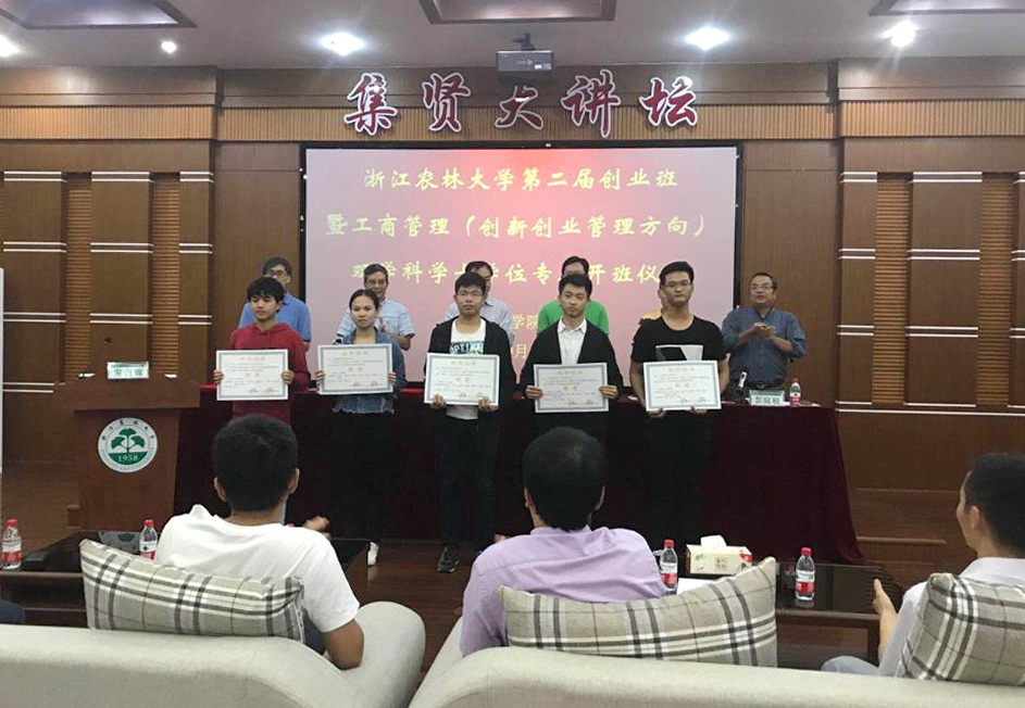 仪式上还对第三届浙江省“互联网+”大学生创新创业大赛获奖团队进行了表彰;为创业班和工商管理(创新创业管理方向)双学科学士学位班的班主任和学业导师颁发了聘书。