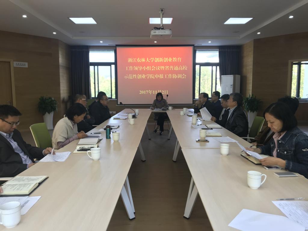 近日,学校召开创新创业教育工作领导小组会议暨部署省普通高校示范性创业学院申报工作,副校长沈月琴主持会议。宣传部、学工部、战略处、人事处、教务处、科技处、创业处、设备处、计财处、社会合作处、团委等部门负责人参加会议。