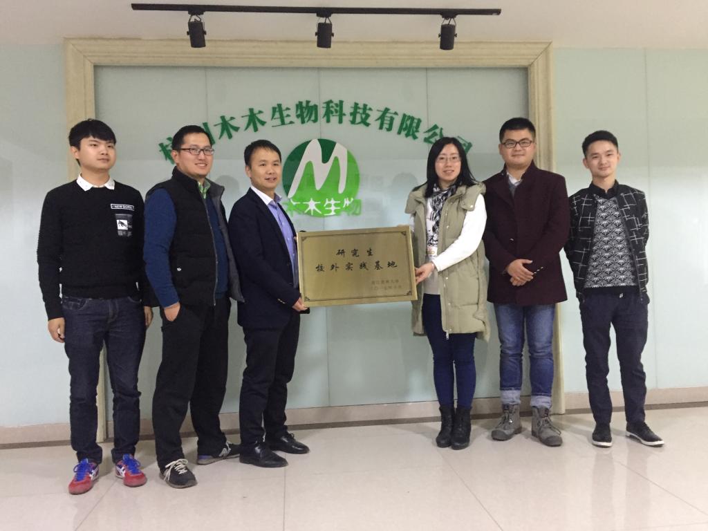 近日,研究生院相关负责人一行到杭州木木生物科技有限公司,为公司负责人、beat365官网研究生毕业生胡重九、陈相涛颁发研究生就业创业导师聘书,向公司授牌“研究生校外实践基地”。