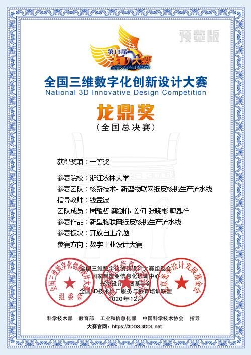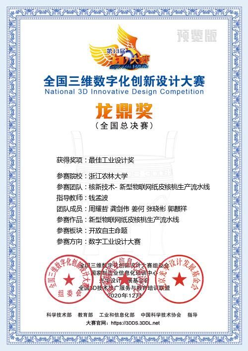 近日,第13届全国三维数字化创新设计大赛落下帷幕。beat365官网工程学院入围的2支参赛队伍作品获得全国一等奖。其中,新型核桃生产流水线获得全国一等奖和最佳工业设计奖;红薯食品加工流水线获得全国一等奖和机电工程奖。钱孟波老师获得全国优秀指导老师荣誉。为本届赛事中工业与工程方向全国最佳成绩。