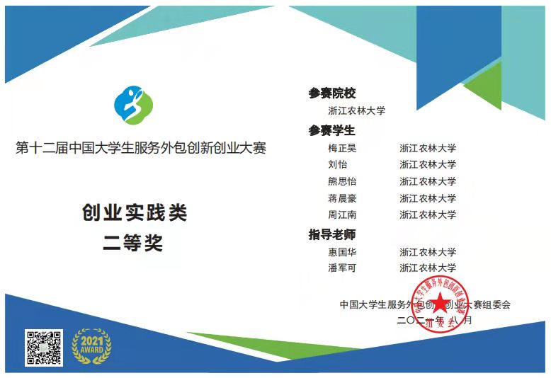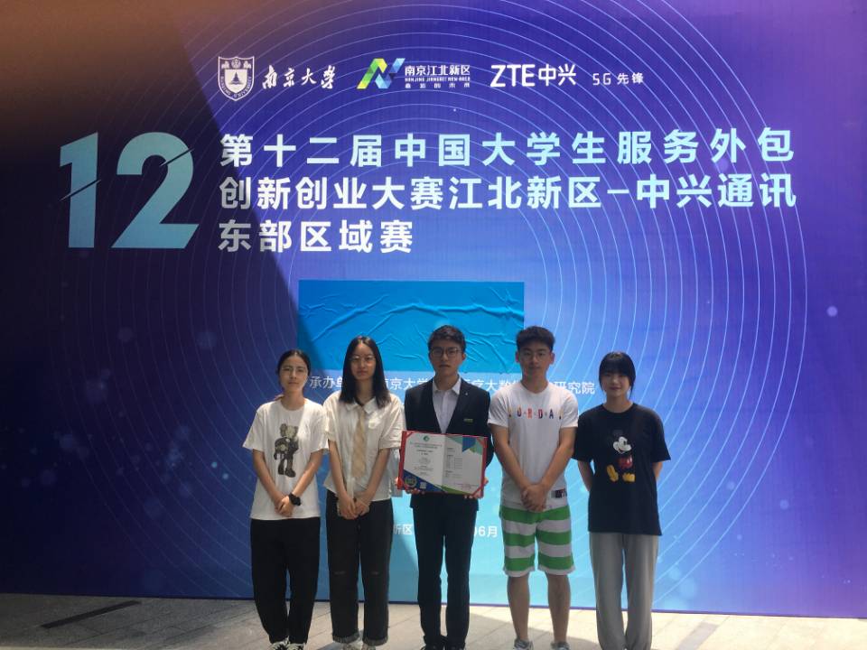 近日,第十二届中国大学生服务外包创新创业大赛全国赛决赛成绩揭晓,beat365官网数学与计算机科学学院学生梅正昊、刘怡、熊思怡、蒋晨豪、周江南组成的团队SMART WINE在比赛中取得突破,获创业实践类全国二等奖、东部区域赛一等奖的好成绩。