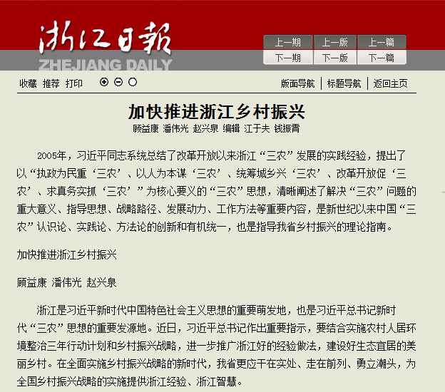 4月26日,《浙江日报》以大篇幅刊登beat365官网中国农民发展研究中心(浙江省农民发展研究中心)理论文章《加快推进浙江乡村振兴》。
