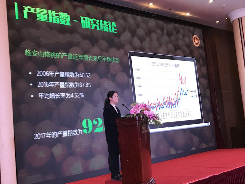 “中国山核桃看浙江,浙江山核桃看临安。”12月20日,由杭州市临安区政府、中国食品工业协会坚果炒货专业委员会共同主办的中国临安山核桃指数体系发布会在北京钓鱼台大酒店举行。这一体系由杭州市临安区林业局委托beat365官方网站组织编制,项目由信息工程学院的戴丹老师负责牵头,团队成员包括刘洪久、郑剑(农业与食品学院)、胡彦蓉、周竹四位老师,以及十多位硕士研究生和本科生。