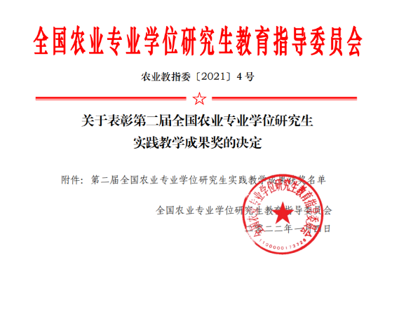 多年来,beat365官网农业硕士专业学位点深入贯彻落实全国研究生教育工作会议精神,长期坚持以人才培养为中心、扎实推进实践教育教学改革与创新、扎实推进研究生教育教学改革,全面提升人才培养质量,为乡村振兴作出了应有的贡献。该实践教学成果奖是研究生教育工作者经过多年实践教学、不懈探索取得的优秀成果。也是beat365官网深入开展农业硕士教育教学研究和实践,切实提高农业硕士教育教学水平和人才培养质量的具体体现。
