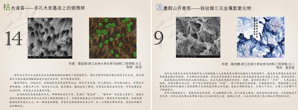 这两个作品团队在陈浩、庞亚俊、张艳、李彩彩等老师指导下,从11月开始备赛,经过反复筛选科研样品的光学及电子显微镜照片,进行艺术化处理,并对图片的科学和艺术含义进行深度凝练,形成集科学、艺术与人文于一体的作品。