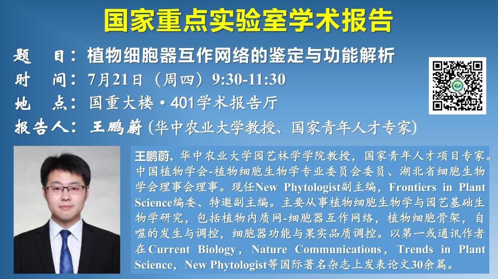讲座预告:植物细胞器互作网络的鉴定与功能解析