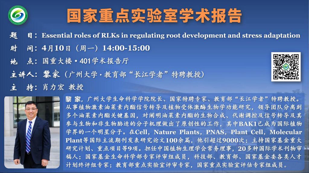 讲座预告:Essential roles of RLKs in regulating root development and stress adaptation