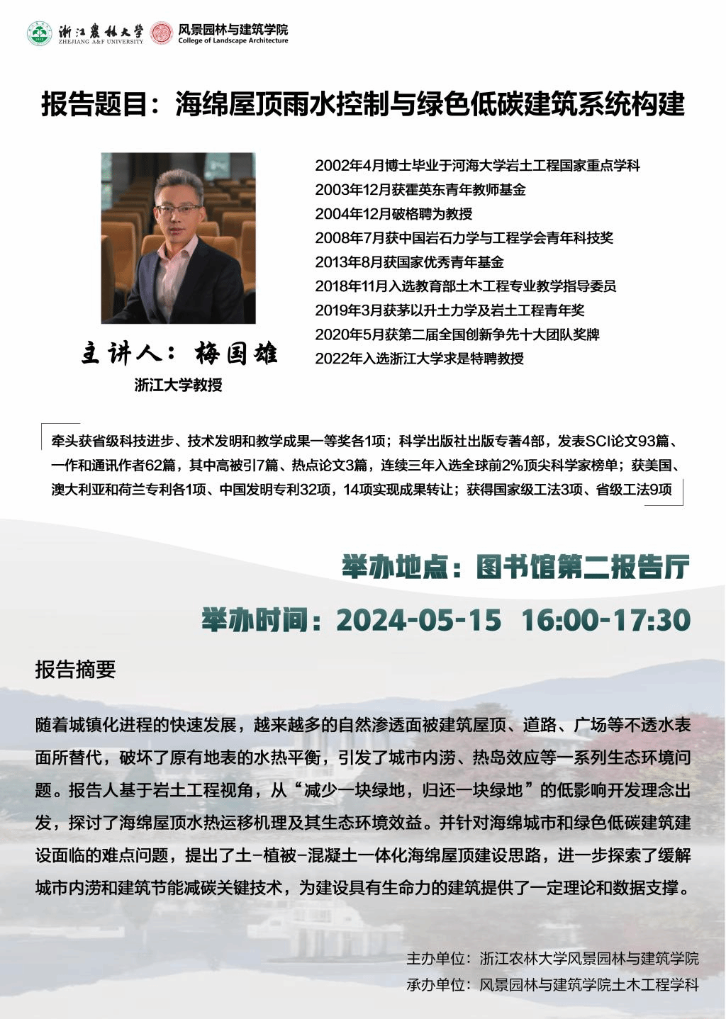 讲座预告:海绵屋顶雨水控制与绿色低碳建筑系统构建
